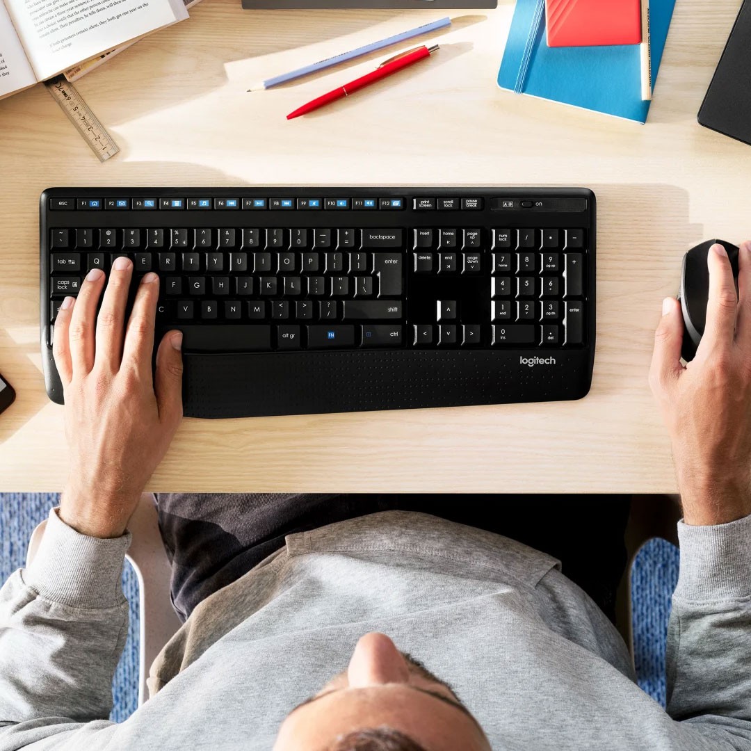 The Logitech MK345 Comfort Wireless Keyboard & Mouse Combo offers full-size performance and long-lasting comfort.