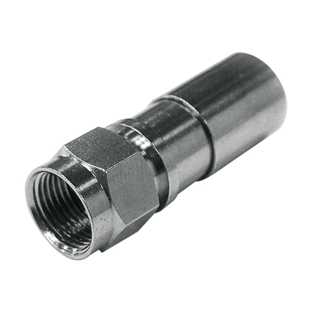 The Televes F Compression Connector (Ref. 4104) is a professional-grade connector designed for RG6 and coaxial cables.